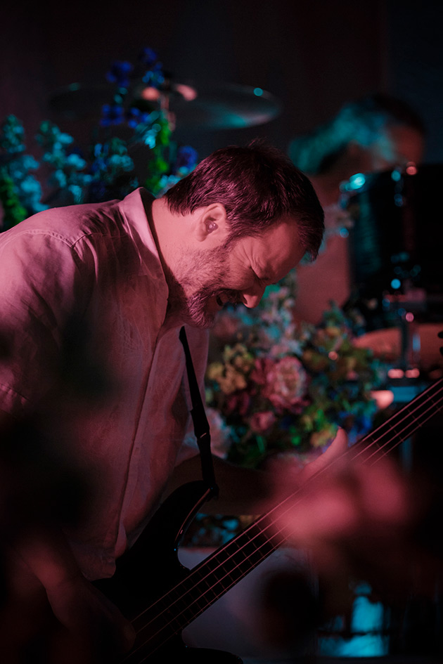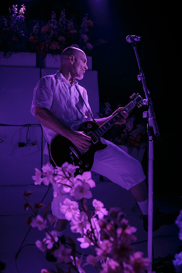 The familiar stink of sweat and beer gave way to an unusual scent inside the Concord Music Hall in Logan Square on Thursday night. Planter by planter, hundreds of living flowers were brought in to fill the stage. As the last stragglers of the sold-out crowd packed into the ground floor, a handful of roadies, dressed all in white, groomed the venue from its dark club default into a cell of light and color. Faith No More played Chicago last night for the first time since the late ’90s, this time in support of its first new album in 18 years, Sol Invictus, which follows 1997’s Album of the Year. While Sol Invictus sounds like Faith No More never hung up its peculiar offshoot of alt rock, the band was happy to let the hits overshadow their new material. They played “Epic” and “Midlife Crisis”; they even encored with “We Care A Lot”, the breakthrough single that found a home on MTV in 1988, before Mike Patton had joined the band. They’ve found a spiritual, if not musical, kinship with their tour openers, Le Butcherettes, who riled up the early crowd with dramatic flair. Frontwoman Teri Gender Bender sang through a sequined scarf she wrapped around her head, gesticulating like a dictator over her mirrored Telecaster. The band all wore red with silver instruments, like a punk rock army sent to sweep away our last shreds of boredom. When Teri stage-dived during Le Butcherettes’ final song, she clawed through the crowd like she was swimming against a current before rolling on her back and floating back to the front. Le Butcherettes had their share of fans to sing along with their choruses, but the Faith No More contingent was bigger and more anxious. They wanted to see a band back from the dead; first, they saw a group of muscular strangers arranging flowers on a white stage. Even the Marshall stacks were wrapped up in white cloth, the logos barely embossed through the fabric. More and more flowers came out while people chanted the band’s name. It seemed like it’d never stop. Faith No More has always occupied a niche seat in the rock pantheon. They are a Mike Patton project, at least since 1988, when the singer doubled up on his Mr. Bungle duties to lend vocals to the band. They use funk bass and metal progressions in their hits, and they have deep cuts that play more like easy listening ballads. Faith No More is an exhibit of pure and athletic musicianship as much as it is a vessel for Patton’s unquenchable character. Mike Patton sang into a microphone last night. He also sang into a repurposed police radio, complete with coiled black chord, and a red megaphone with a microphone seemingly built in. Sometimes he would hold his normal microphone up to the mic-equipped megaphone, screaming and screaming through layers of amplification. He had a small effects rig set up on a white music stand near the front of the stage, and he’d tweak pedals on his voice the way a guitarist would. The voice is an instrument, of course, but few people play it like Patton. Patton can do death metal growls, and he did; he can croon and shriek and bellow from the bottom of his gut, and he did. He has one of the most elastic voices in American music. Dressed in all white with a string of red beads, he pounced around the stage with his longtime bandmates. He’s the kind of frontman who’s more interested in amusing and being amused by his audience. Faith No More’s primary emotion is power, and Patton offsets that musical megalomania by cutting dumb jokes. He had a running gag about hitting on a fan in a Behemoth T-shirt that he called “Mr. Fuckable.” This is the band that posed someone in a gimp suit in their latest round of promotional photos; they’ve never been shy about sex or its absurdities. Patton is a singer first and a frontman second, but he still goaded the crowd into singing an entire chorus of “Midlife Crisis” before launching into a lounge act rendition of the same song. If you’ve ever wanted to hear funk metal’s most solid radio single as performed by a tropical wedding band, Faith No More offered a glimpse of just that. It was a gag but a well-rehearsed one; with Patton, drummer Mike Bordin, bassist Billy Gould, guitarist Jon Hudson, and keyboardist Roddy Bottum, the band is a tight knot of seasoned professionals. There is power in how they work together, pounding through every beat with labored precision. Faith No More’s never without its fun. They played the best song ever written about Scientology (“Land of Sunshine”), but also covered “Easy” by the Commodores with more relish than irony. They closed their encore with “I Started a Joke” by the Bee Gees. Their own songs are streaked with darkness but also irreverence, and they thrive at the intersection of the two. They find power in their odd corner, and for the first time in years, they’re sharing it.