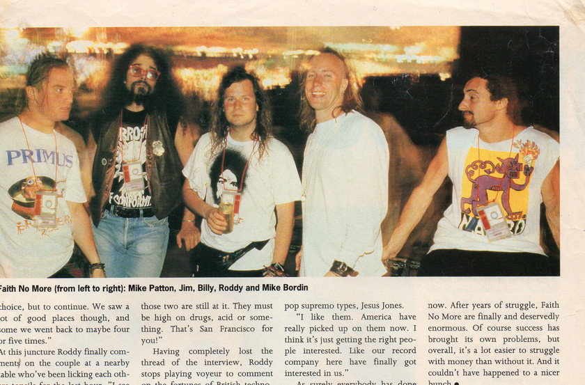 Guitarist Jim Martin knew whose hour it was, striding around in total control, not putting a pick wrong, enticing the crowd into his filthy web of activity and personality (they screamed at the merest flick of his arm). Bassist Bill Gould and drummer Mike 'Puffy' Bordin locked solid into a huge rhythmic punch, whilst keyboardist Roddy Bottum continued to prove his indispensability.
