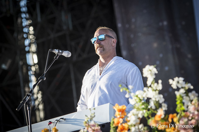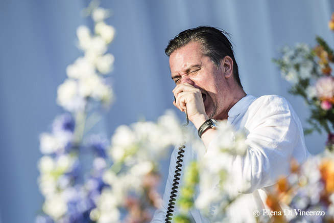 In the break between Meshuggah and Faith No More someone shouts "Free Bird!", The classic gag to flush out the glitter at concerts. A bit like those who thundered "Tombola!" In the first issue. In this easy-going climate, roadies enter the stage. They wear white clothes and drag walls of Marshall amps, also wrapped in white sheets. And then the fake flowers, many. Practically, while in the background soundtracks of Sixties films (from Henry Mancini to Ennio Morricone) play, on the stage of the Sonisphere the Sanremo Festival 1969 is set up . In short, a surreal, delusional atmosphere, considering that 5 minutes earlier there were the Meshuggah.