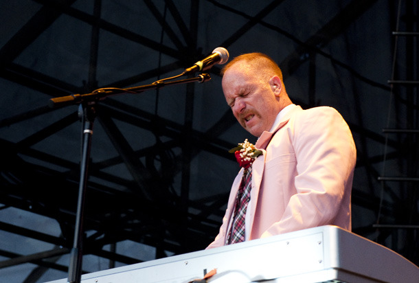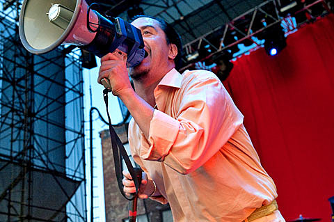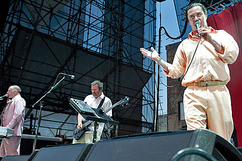 The crowd erupted in cheers, over a decade in the making, when Faith No More took the stage at the Williamsburg Waterfront last Friday. After reforming in February of 2009, the band had played dozens of dates in the UK, but didn't play the US until April of this year, and that was just four shows in California. So this was the first time they had been anywhere near the East Coast since breaking up in 1998. It was fitting that their first song (as it has been on many tour dates) was "Reunited," by Peaches and Herb.
