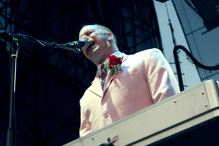Faith no More played a pretty even mix of the albums they made after Mike Patton joined in 1989. They started their original material with "From Out of Nowhere" which, fittingly, is the first song on "The Real Thing," the first album they made with Patton. From the beginning notes of "Nowhere" the crowd started singing along, and it kept up throughout the entire concert (minus Chariots of Fire.) It's been a long time since I heard that many people sing along with an entire show and it really added to the experience. What didn't add to the experience was the way the "beer-drinkers" were sectioned far off from the rest of the audience. It seemed there were many unnecessary barricades, and all the grass near the stage was sectioned off, removing the only comfortable option for anyone who wanted to sit and watch the show. And did there really need to be separate lines for beer tickets and beer?