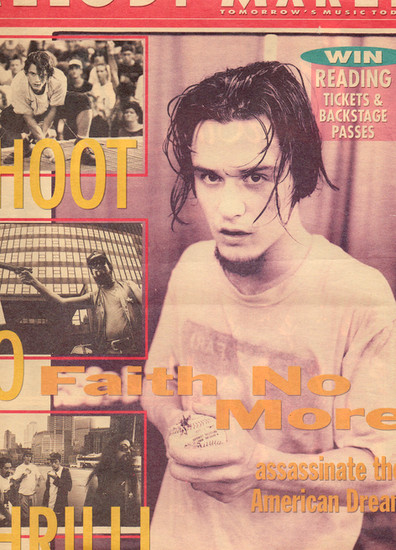 Patton wants to print a t-shirt featuring Jim in familiar thumbs up pose, bearing the legend, "Jim Martin says Techno's OK". There's not much the guitarist hates more than Techno. The band have just heard the Youth mixes of their new single, "A Small Victory", and they're happy as pigs in shite. Roddy is even planning to record a Techno track with Anne Mognusson and the Freds' Richard Fairbrass.