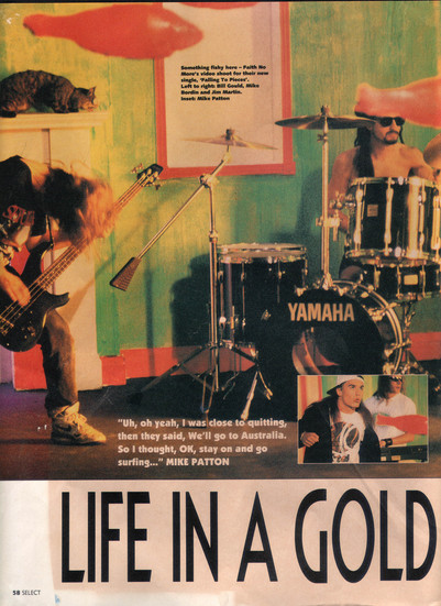 "What can I say?" chuckles Patton during a brief escape from the video producer's clutches. "Uh, oh yeah, I was close to quitting, then they said, We'll go to Australia. So I thought, OK, stay on and go surfing..."
